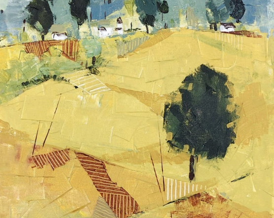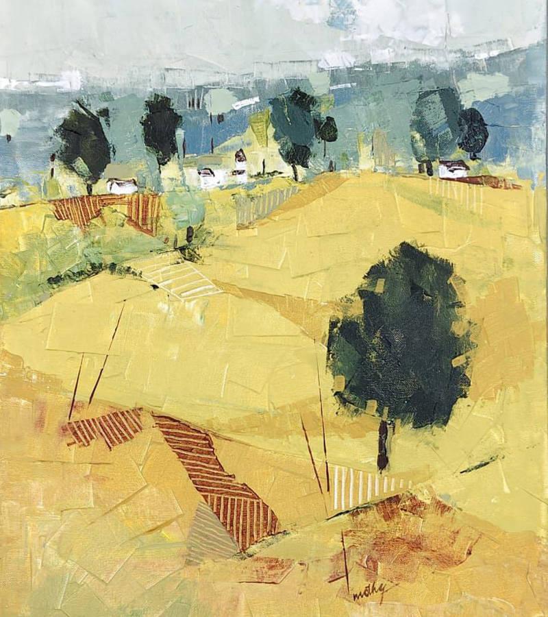 Technique blends bold colors and layers to evoke depth and feeling.